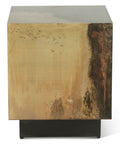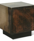 The Moab 20" brings bold, curated style to any room. Its geometric cube form showcases a mesmerizing oxidized copper surface—warm amber tones melting into deep charcoal along the edges—all anchored by a clean black metal base. This is sculptural furniture that actually works, offering both visual drama and practical surface space for your modern interior.