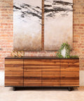 The Santa Fe 72" Four Door Sideboard celebrates the natural beauty of solid saal wood with its rich grain patterns and warm finish. Stripped-down design keeps the focus on the wood itself—clean lines and minimal hardware let the material shine without distraction. Behind those four doors lies generous storage that works hard whether you're organizing a dining room, anchoring an entryway, or outfitting a hospitality space. It's the kind of piece that feels both grounded and current, bringing organic warmth to any setting without demanding attention.