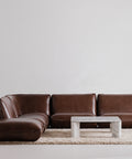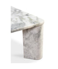 The Segment Coffee Table showcases striking Raj ashen grey marble with organic veining that shifts across its surface. Its sculptural base features clean angular lines that contrast beautifully with the stone's soft edges, creating visual depth and movement. This modern piece brings natural elegance to contemporary spaces while maintaining an understated sophistication. Use coasters to preserve the marble's pristine finish and keep its timeless appeal intact.