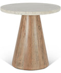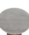 The Vista 22" Side Table brings understated elegance to any room with its striking white travertine surface and light mango wood base. This compact accent piece balances modern simplicity with natural beauty, making it equally at home beside a sofa or next to your bed. Travertine's organic character shines through in its unique color variations and textured finish—no two tables are exactly alike. That individuality is part of its charm, giving your space a genuinely one-of-a-kind focal point that feels both timeless and effortlessly stylish.