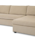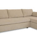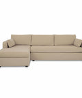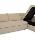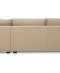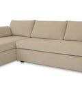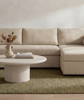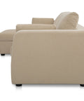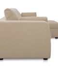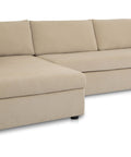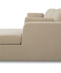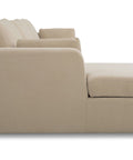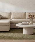 This sectional proves that smart design doesn't mean sacrificing style. The Burrow pairs a lifted chaise with concealed storage and a pull-out sleeper that transforms into a short queen bed—perfect for guests or extra rest. Built from sand-colored recycled polyester performance fabric with a subtle texture, it handles everyday living with ease. Softened edges and arm cushions add a refined touch that elevates any compact space without the fuss.