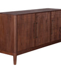 Warm toffee nut tones and natural wood grain make the Casablanca 64" Sideboard a striking addition to any dining or living space. Built from sustainable solid wood with textured doors and three compartmented shelves, it balances visual appeal with practical storage for everyday essentials. Each piece showcases its own character through subtle wood variations, ensuring your sideboard is truly one-of-a-kind.