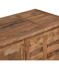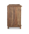 History in every panel. Augusta brings a heritage character to a classic silhouette. Crafted from reclaimed wood once used in the railway system, each strip has been naturally seasoned over time—giving the piece its rich tonal variation and weathered charm. Vertical and horizontal panels create a quiet rhythm across the front, while subtle overhangs on the top and base nod to tradition. Rustic in material, refined in shape—this one tells a story without saying a word.