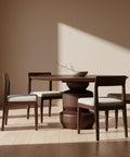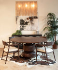 The Cambridge 60" Round Dining Table brings together solid mango wood in a rich walnut finish with its unique totem stacked pedestal in a piece that works harder than it looks. Its circular design naturally draws people together at home in a modern loft or a traditionally appointed dining room. Sized to seat six to eight, it's built to handle everything from everyday family dinners to restaurant-quality service, with the kind of material quality that only gets better as it ages.