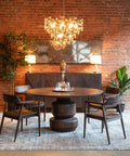 Crafted from mango wood with a rich walnut finish, the Cambridge Dining Chair is understated sophistication. Its gently rounded silhouette draws from classic design principles with mid-century influence, while the warm wood tones and refined proportions make it a versatile anchor for contemporary or traditional dining spaces. Built to withstand daily use, this chair combines durability with aesthetic refinement—a piece designed to age gracefully in your home.
