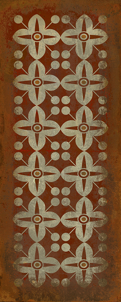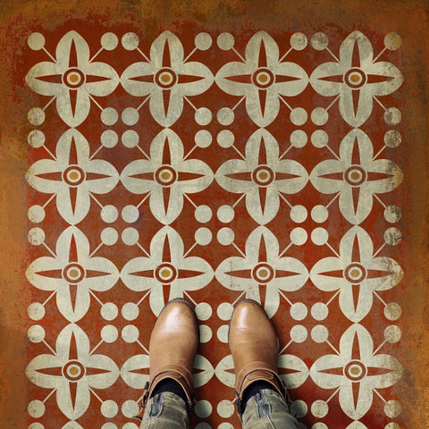 Inspired by old floor cloths and vintage linoleum, these vibrant vinyl floor cloths offer warm colors with beautiful aging. These Vintage Vinyl Floor Cloths are extremely durable and flexible with a non-stick surface. These rugs are also very easy to clean and lay flat. Great in kitchens, baths, and offices, they can even be used in controlled outdoor settings, or in a screened in porch. Due to the unique printing process, some variation in color may be expected for Spicher and Company Vinyl Floor Cloths.