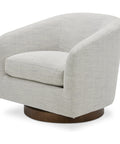 Sink into the Oscy swivel chair and discover your new favorite spot. This sculptural accent piece combines a solid wood floating base with smooth 360° rotation, making it equally at home in a reading corner or living room. Wrapped in softly textured fabric or top grain leather that feels as good as it looks, Oscy delivers understated elegance with an inviting, lived-in vibe. Perfect for those who want comfort without compromise.