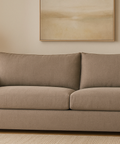The Farrow Sofa brings understated elegance to any room. Generously proportioned at 91 inches, it features plush, fiber-filled cushions and gently sloped arms finished with refined piping. The low-profile silhouette floats on a concealed base, creating an airy, sophisticated look. Available in rich cedar green, warm taupe, or soft oat, each option showcases a subtle sheen that catches the light beautifully. Equally at home in modern or classic interiors, the Farrow delivers the comfort and versatility every living room deserves.